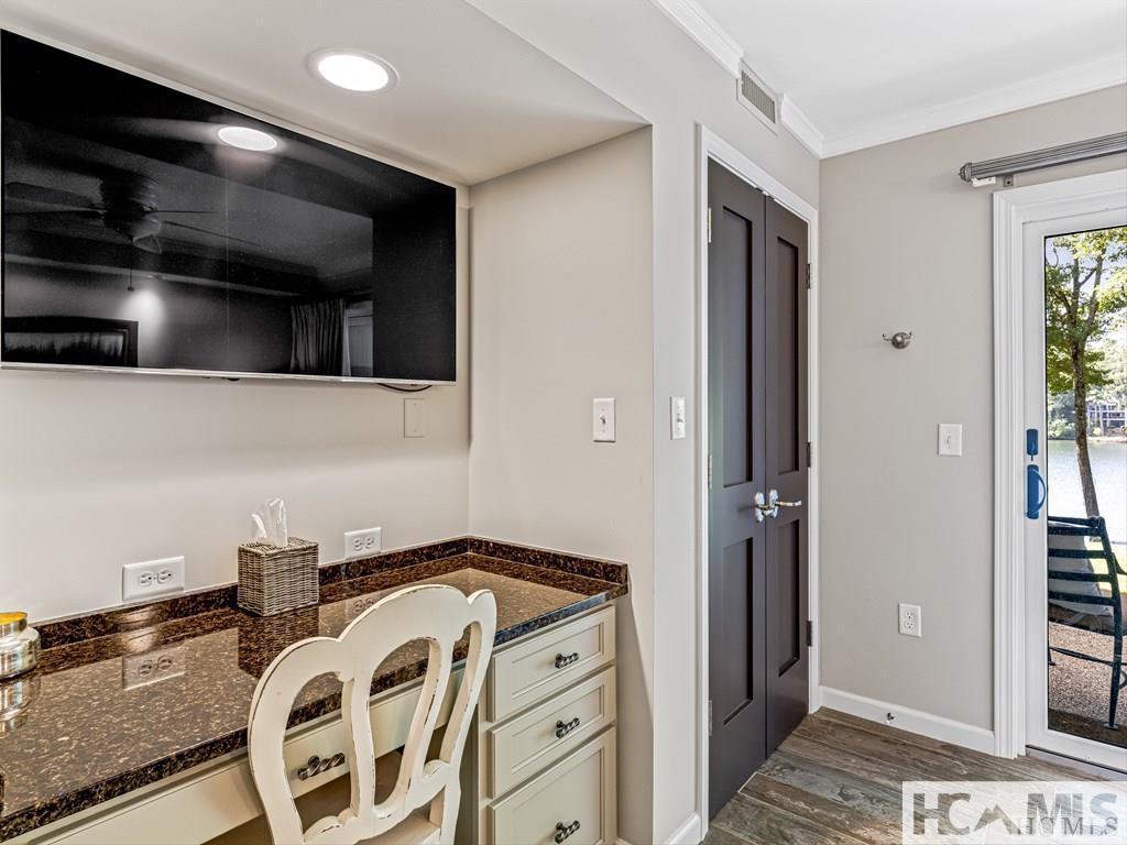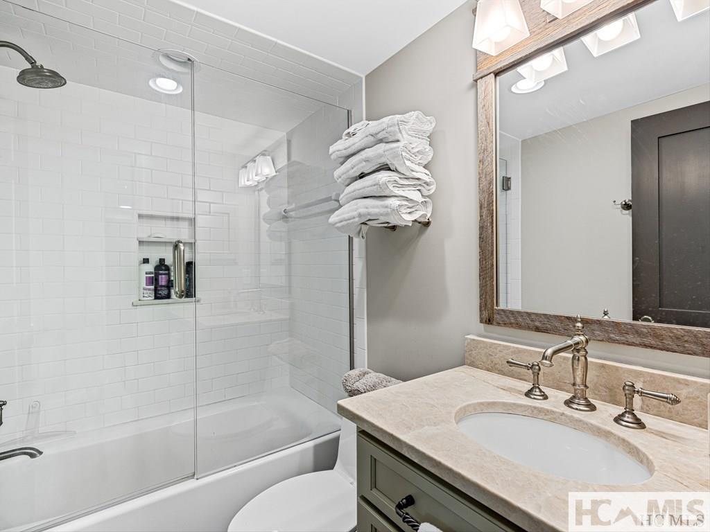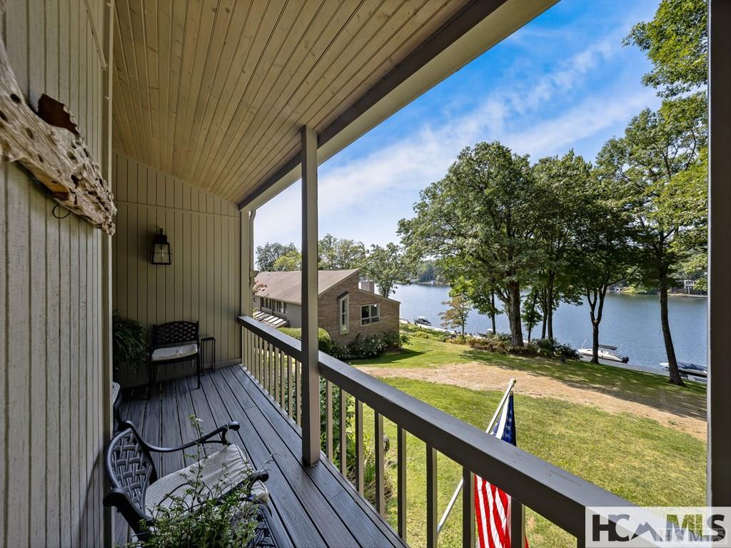 This lakefront condo has been updated throughout and features 2 bedrooms, 2 full baths, one half bath and a bonus room. Offered beautifully furnished, with exceptions. Step outside to the stone patio, perfect for grilling and entertaining al fresco. The interior dining area is complete with a wet bar and opens to the beautifully renovated kitchen. Settle in by the fireplace after the sun goes down and enjoy the porch and gorgeous lake views. Retire to the primary en-suite above it all with spaces thoughtfully designed for efficiency and organization. Toxaway Shores has all the coveted amenities - private pool, private tennis/pickleball court, a wrap-around dock with your own boat slip, a community clubhouse and a lush green lawn to enjoy all the summer activities. Enjoy maintenance-free living in this condo on the lake.